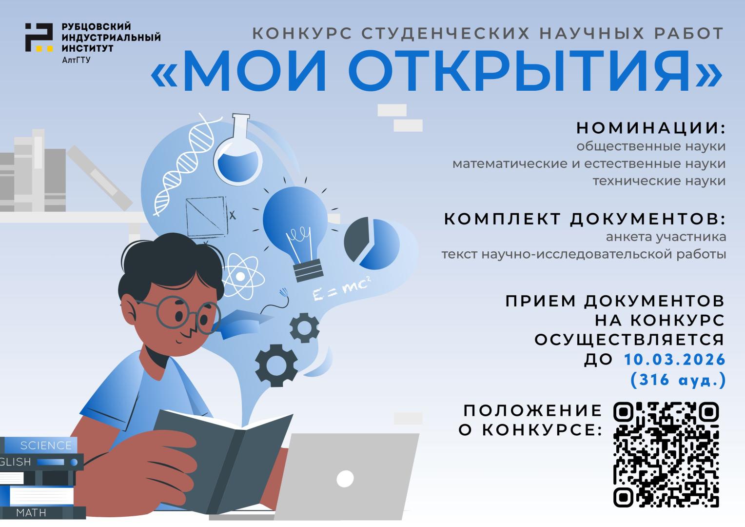 С целью популяризации науки, выявления и поддержки талантливых и творчески активных студентов, осуществляющих научно-исследовательскую деятельность, РИИ АлтГТУ объявляет конкурс студенческих научных работ «Мои открытия».