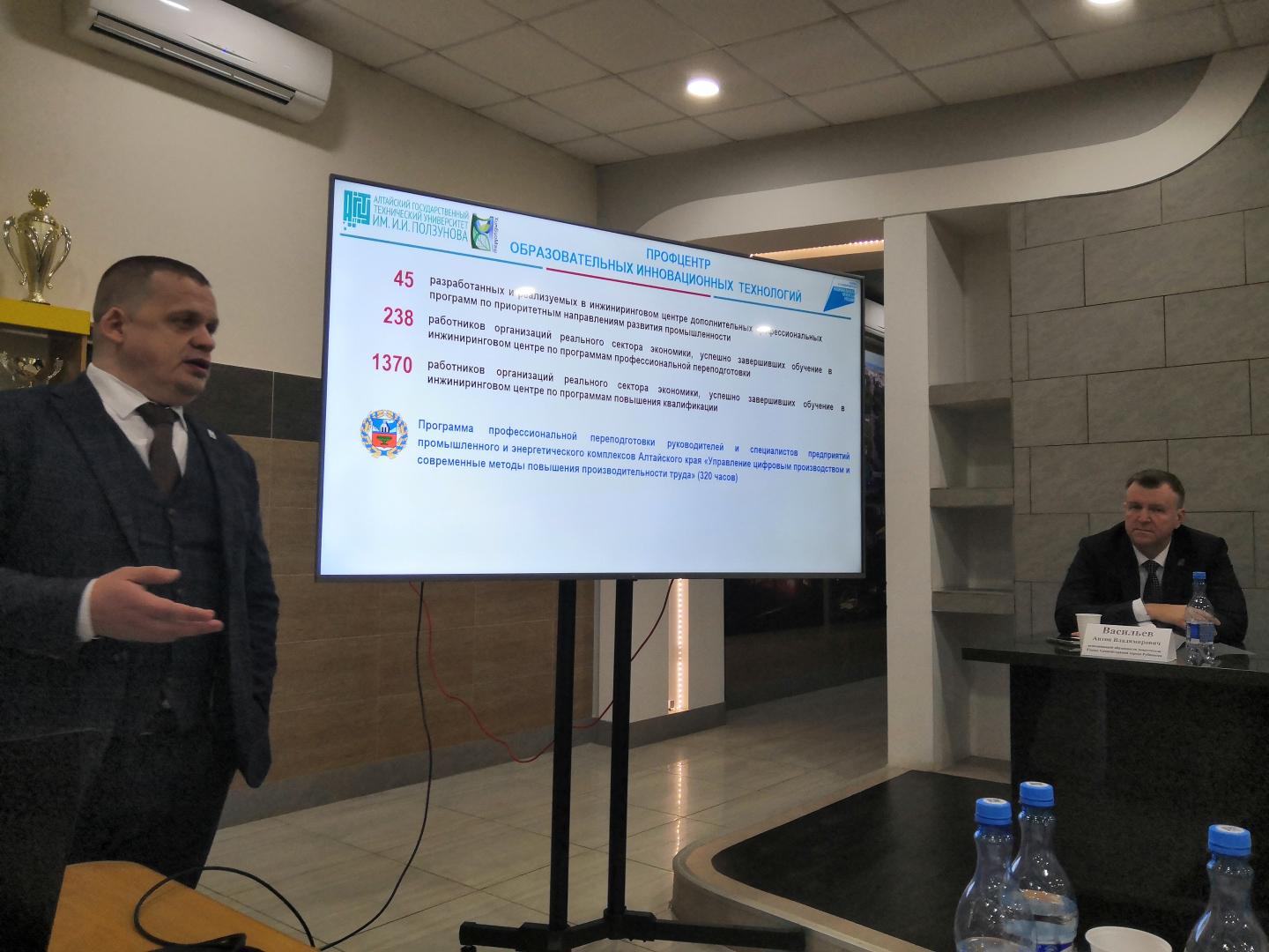 Проректор по НИР АлтГТУ Александр Анатольевич Беушев доложил о вариантах сотрудничества АлтГТУ и РИИ АлтГТУ с промышленными предприятиями в сфере научных исследований и привел наиболее успешные примеры такого сотрудничества.