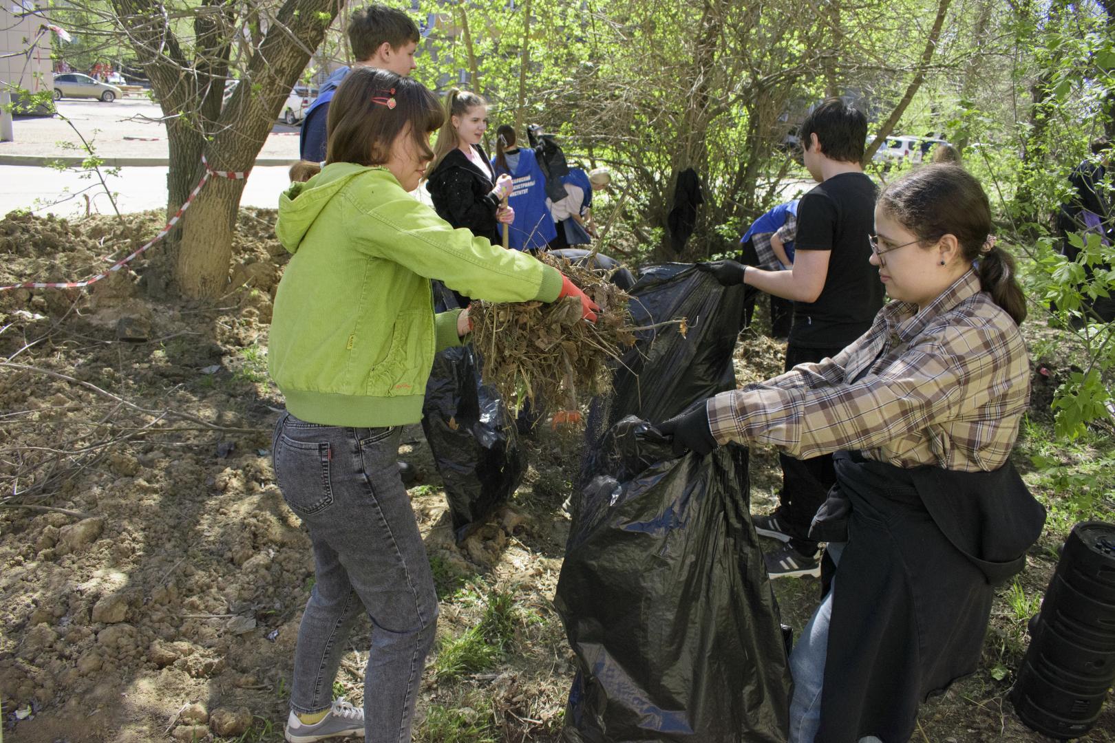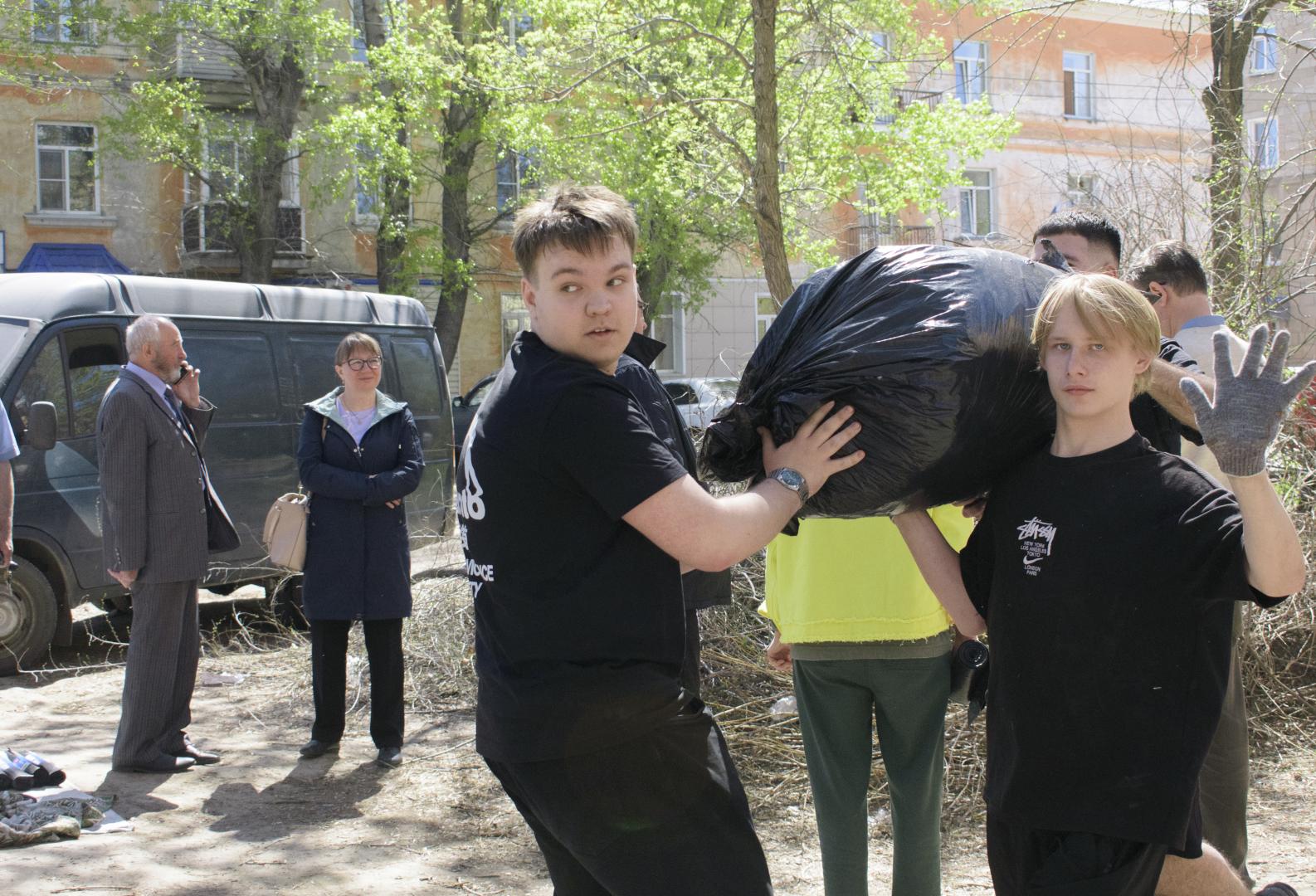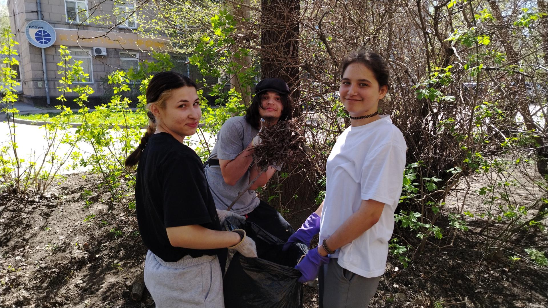 Особо стоит отметить активность студентов: они не только старательно выполняли свои задачи, но и придумывали забавные мини‑соревнования — например, кто быстрее наполнит мешок листьями или, кто найдёт самый необычный предмет среди мусора.