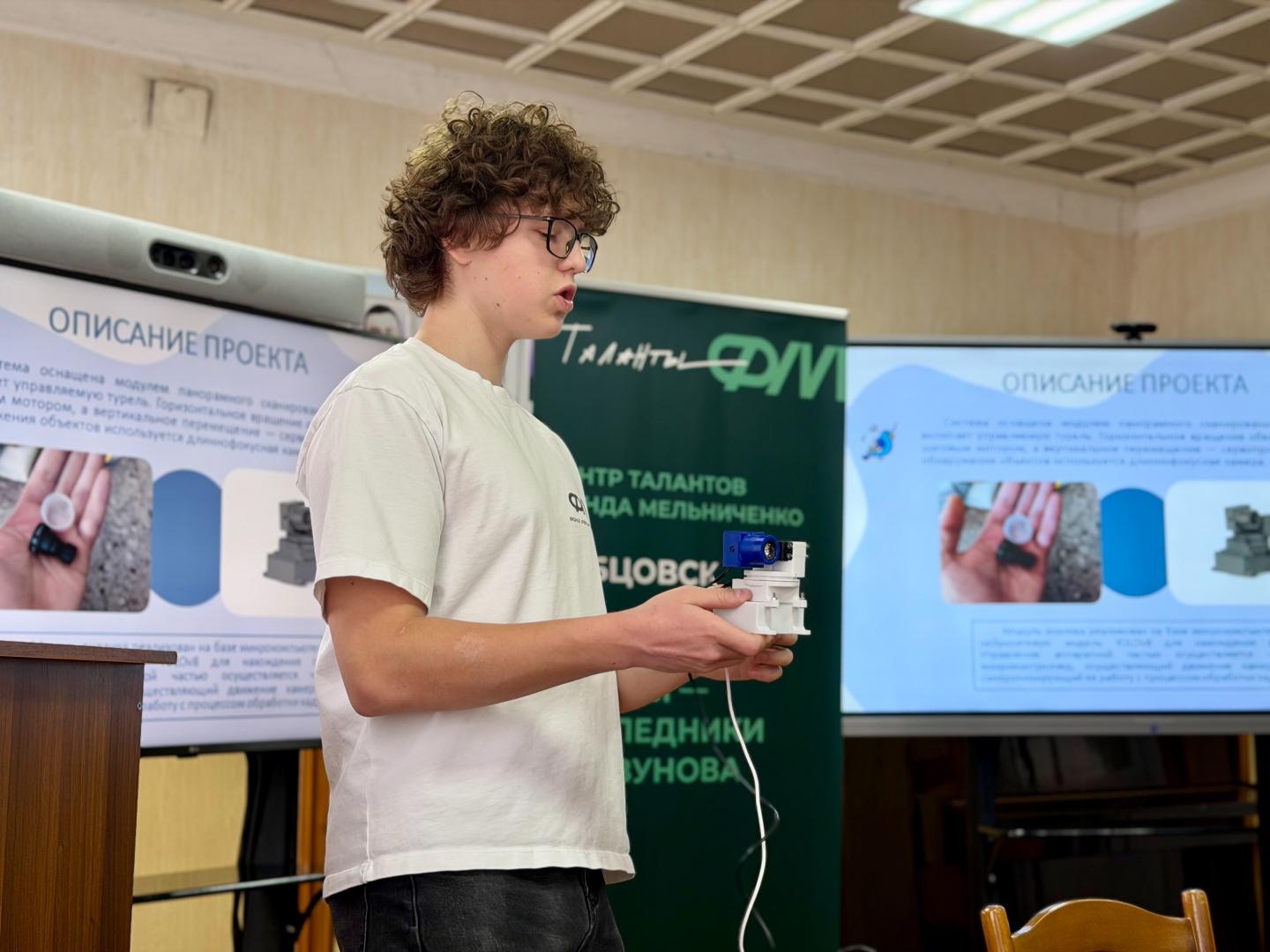 В торжественном собрании принимал участие Центр талантов Фонда Мельниченко «Рубцовск» («Наследники Ползунова»). Ученик Рожков Егор представил свой проект «Система мониторинга и подсчёта перелётных птиц». Актуальная тема автоматизации учёта мигрирующих птиц — ключевое направление для решения глобальных экологических задач и выполнения природоохранных обязательств России. Система, оснащенная модулем панорамного сканирования, вызвала живой интерес участников собрания: были заданы вопросы и даны полезные рекомендации для дальнейшей разработки.