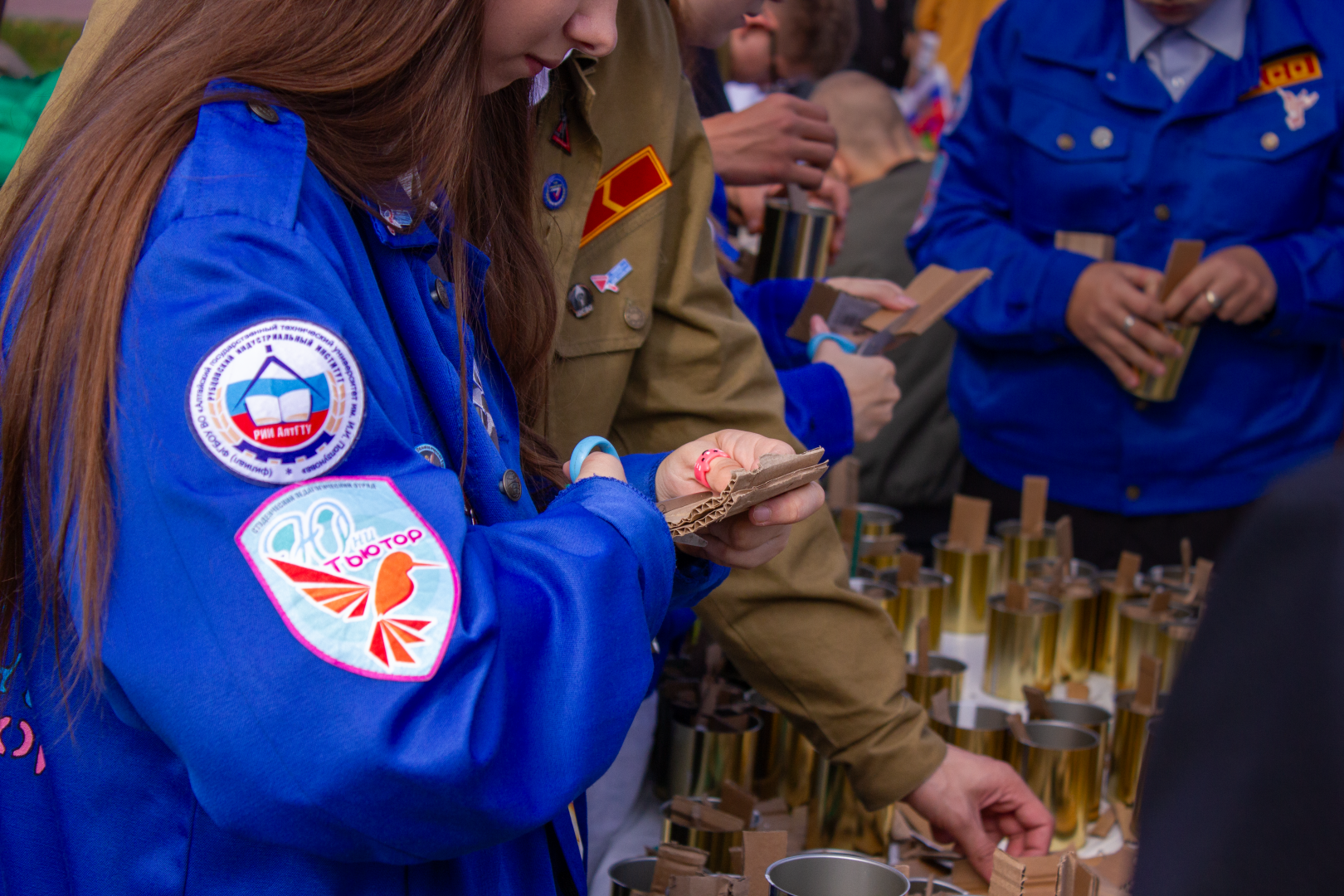 Поддержал желание окунуться в атмосферу единства и Штаб трудовых дел РИИ АлтГТУ. Бойцы отрядов участвовали в организации мастер-класса по созданию свечей для СВО, занимались плетением маскировачных сетей. Эти навыки оказались крайне полезными и востребованными, ведь они помогают поддерживать наших солдат на передовой, а также, все участники Фестиваля отведали настоящей солдатской каши, приготовленной по оригинальному рецепту нашими военнослужащими.