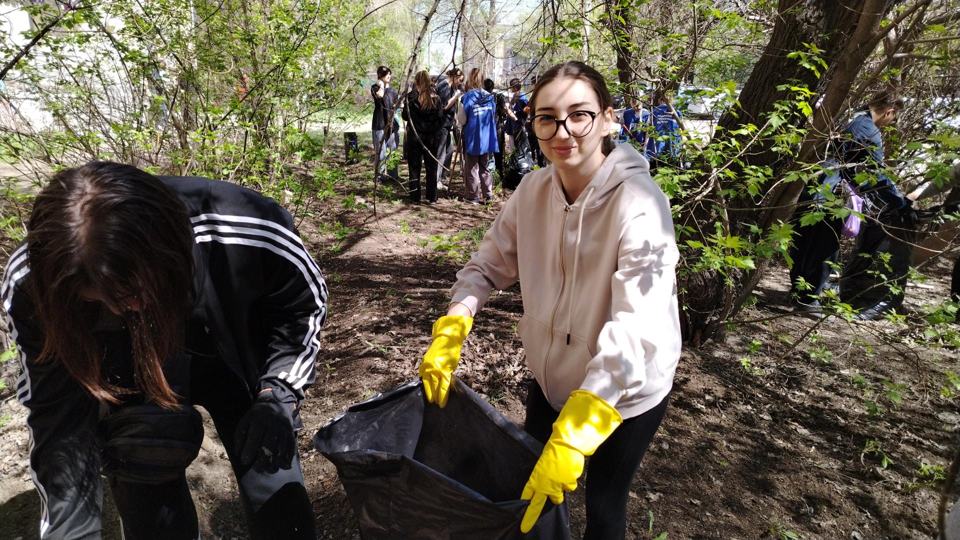 Особо стоит отметить активность студентов: они не только старательно выполняли свои задачи, но и придумывали забавные мини‑соревнования — например, кто быстрее наполнит мешок листьями или, кто найдёт самый необычный предмет среди мусора.